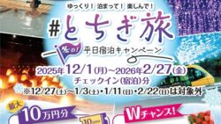 栃木県では、12月1日(月)~2026年2月27日(金)の期間、冬季における観光需要の喚起と地域経済の活性化を目的に、「とちぎ旅 冬の平日宿泊キャンペーン」を実施している。 キャンペーンの宿泊期間や応募条件について 「と...