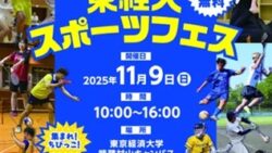 第2回「東経大スポーツフェス」が、11月9日(日)、東京経済大学武蔵村山キャンパスで開催される。 主催は、東京経済大学スポーツフェス実行委員会だ。 15種類の体育会スポーツを1日で楽しめる 昨年11月に開催された第1回「...