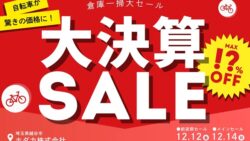 シティサイクルからスポーツ自転車まで幅広く展開する日本の自転車メーカー・ホダカは、埼玉県越谷市にあるホダカ構内にて「倉庫一掃大セール」を開催! 12月12日(金)に前夜祭セール、12月14日(日)にメインセールを実施する...