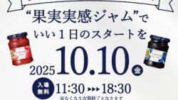 明治屋は、今年8月に新しい「果実実感ジャム」を発売した。これに伴い、10月10日(金)に京橋エドグラン1階京橋中央ひろば(中央通り側)にて、先着500人に「果実実感ジャム」150gを無料で1個配布するイベントを開催する。...