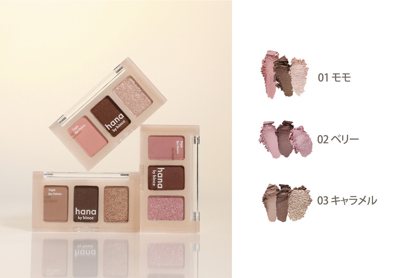 レイヤリング可能な3色でさっとトレンディーなアイメイクが完成するミニアイパレット。指ひとつでムラなく綺麗に仕上がるテクスチャーで初心者でも簡単に完成度の高いアイメイクが叶います。