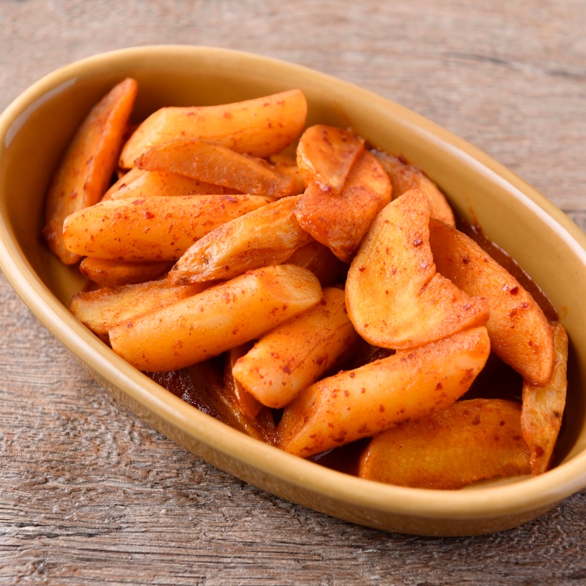 屋台でも人気!韓国のお餅をコチュジャンや砂糖で甘辛く煮た韓国の定番料理。