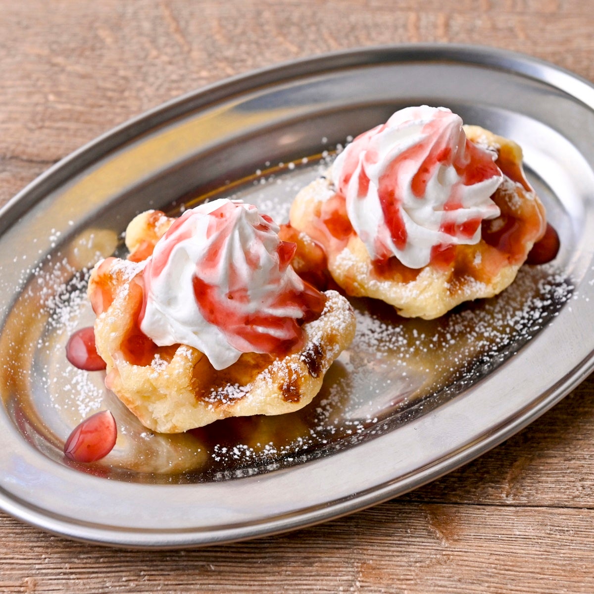 イチゴのすっきりとした酸味と甘いホイップクリームがベストマッチな特製ワッフル!
