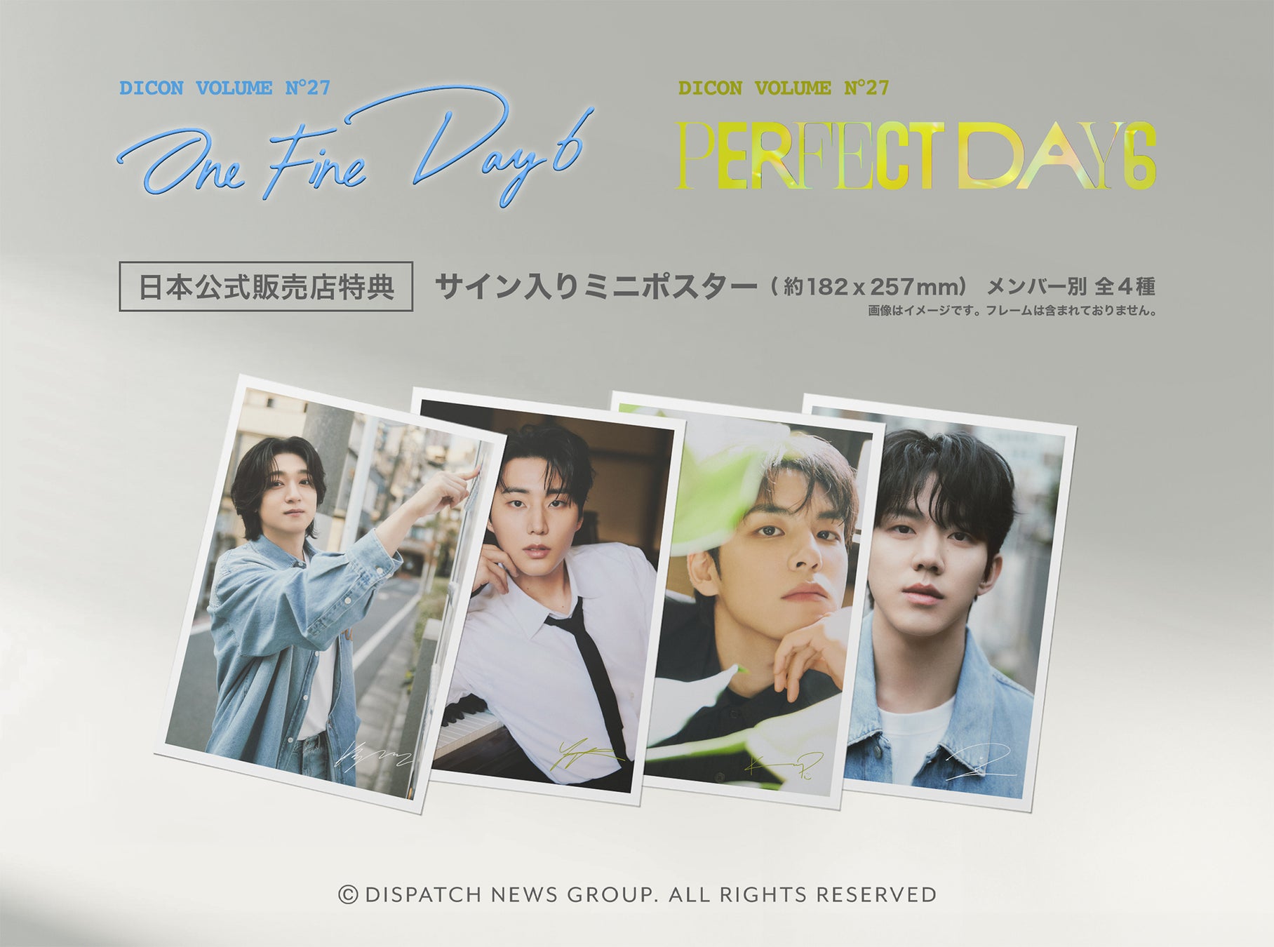今回、彼らが主役を務める27作目のDICON写真集は『DICON VOLUME N°27 ONE FINE DAY6(A-type)』、『DICON VOLUME N°27 PERFECT DAY6 (B-type)』というカラーが違う2パターン展開! 光文社ECサイト「kokodeブックス」をはじめ、日本の公式販売店で2025年4月4日(金)14時~4月13日(日)23時59分まで期間限定で発売します!