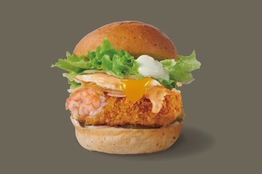 さらに今年は、新たな仲間が登場!目玉焼き風オムレツを「えびかつ」と一緒にサンドし、サウザンドレッシングでさっぱりシンプルに仕上げた『えびたまバーガー』(580円税込)が新発売。ぷりぷり「えびかつ」のうま味に卵黄ソースのコクがとろける、贅沢な一品です。