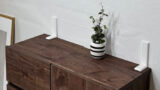 サイズは横20cm×縦10cm×幅3cmで、素材には牛革、裏生地には綿を使用。