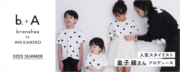 ブランシェスよりデビューしたキッズレーベル「b.+A branshes by AYA KANEKO(ビー ドット プラス エー ブランシェス バイ アヤ カネコ)」は、2025夏コレクションを公開。5月19日(月)の週より、順次販売をスタートする。