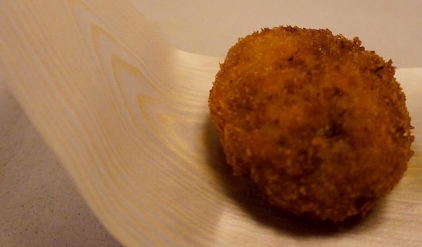 「居酒屋 農人名物安曇野放牧豚のメンチカツ」800円(税別)は、粗挽きの安曇野放牧豚を使った、食感を楽しめるメンチカツ。