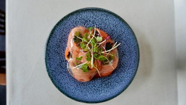 「藤屋わさび農園のワサビ田サーモンマリネ」1,200円(税別)は、ピュアな味わいのワサビ田サーモンと、宮内庁御用達の安曇野わさびを存分に味わえる。