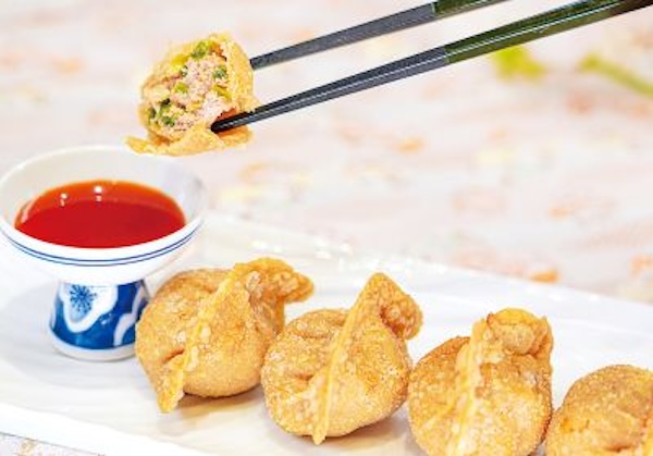 「オーツ餃子」¥968(税込)は、栄養素を多く含み、食物繊維が豊富で体に優しい食材である、オーツ麦を使った生地で作るヘルシーな揚げ餃子。ふんわりとした風味が特徴で美味しさと栄養を兼ね備えたメニューとなっている。