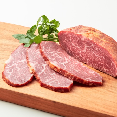 独自の製法で丁寧に燻製されており、上質な黒毛和牛の奥深い味わいと脂の旨味を堪能できる。