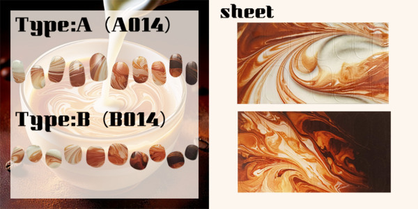 「014 Coffee & Latte」は、コーヒーやカフェラテを注いだときに生まれるマーブル模様を表現し、ミルクベースとコーヒーベースでそれぞれデザイン。