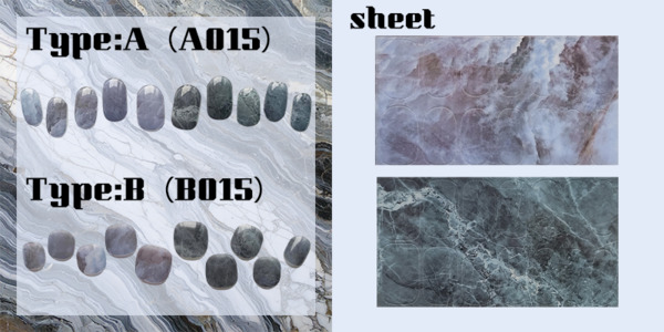 「015 Bluegray Marble」は、大理石や天然石のようなランダムに発生する自然な模様を生かしたデザインで、ブルーグレーの絶妙なカラーがポイントだ。