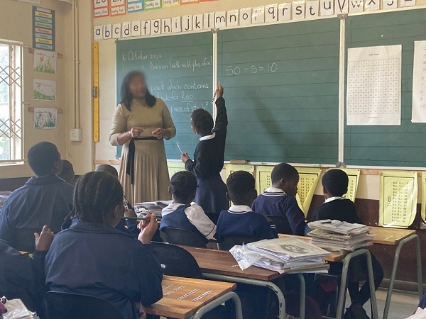 南アフリカでは、黒板を使うだけではなく、道具を手でさわりながら数について学習する。