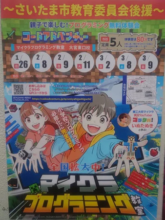 この機会に、プログラミング体験会「マイクラプログラミング教室」をチェックしてみては。