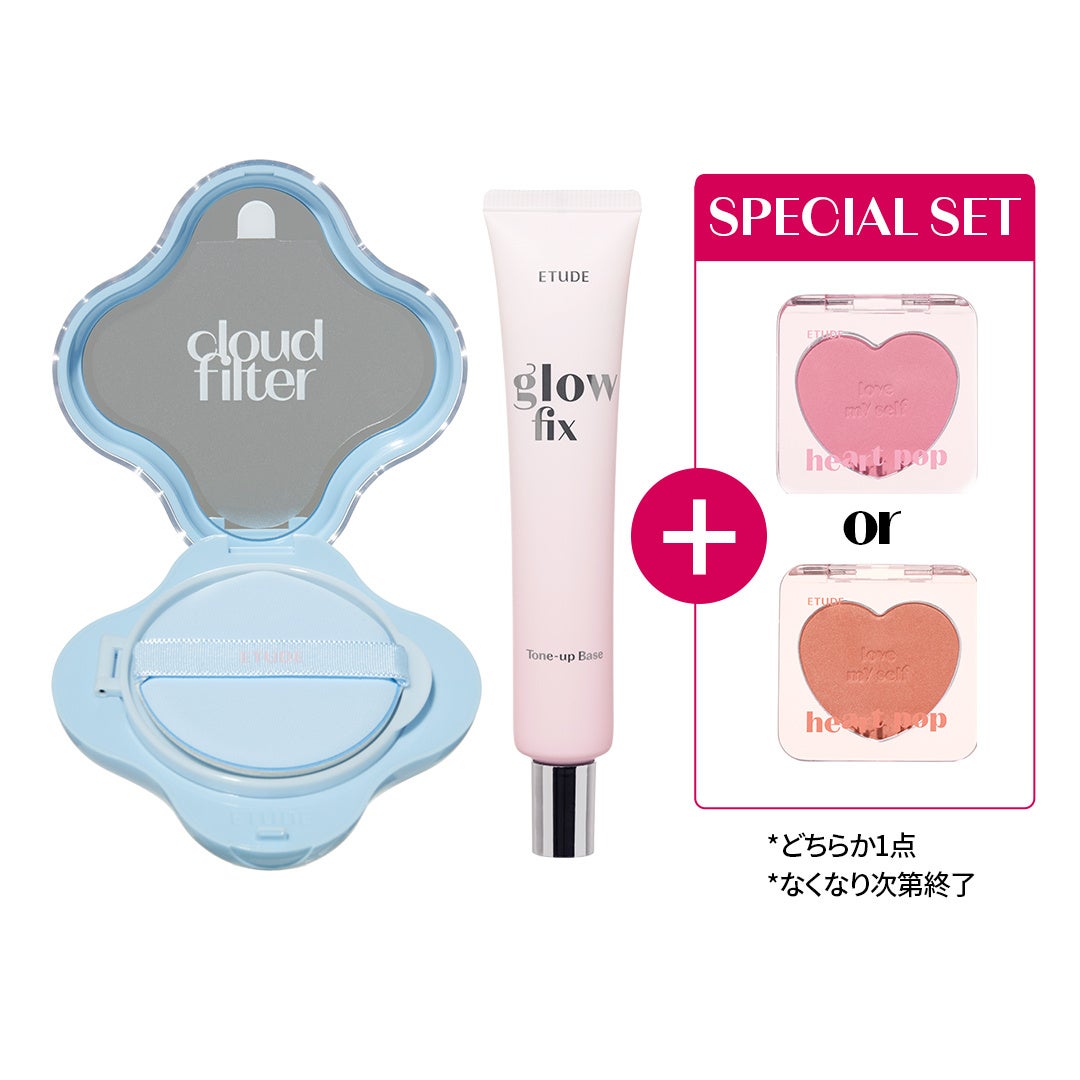 べたつく時期にもぴったり!軽やかな仕上がり叶える「クラウドフィルタークッション」とほのかなツヤをプラスし、肌トーンを底上げする化粧下地。さらに夏肌に彩るチーク、ベースメイクはこのセットで完結!Qoo10メガ割で最大40%OFF!