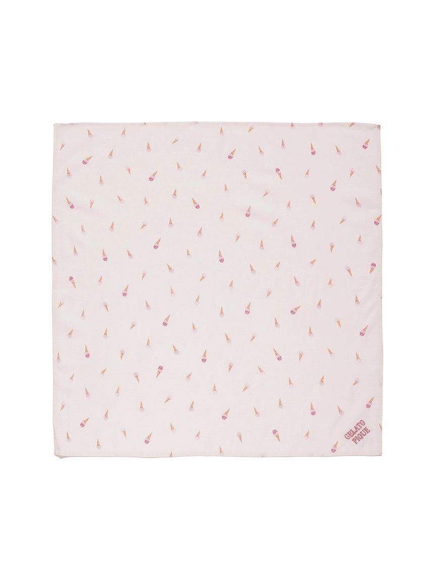 チョコチップとストロベリーの小さなコーンアイスを沢山ちりばめた、キャッチーなバンダナが登場。縦横48.5cmサイズのバンダナは、トレンドのバブーシュカとしてヘアスタイリングしたり、バッグのハンドルに巻いたり様々な用途で使用できるマルチなアイテムです。