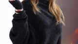 写真には、グレーのカーディガンにブルーのシャツをマッチさせたスタイリングのユンサナの姿が収められている。