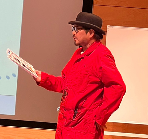 塚本やすしさんは、主な絵本に『カップねこ』(ニコモ)、『おにのパンや』『とんかつのぼうけん』『このすしなあに』(以上ポプラ社)、『おでんしゃ』(集英社)など多数ある。