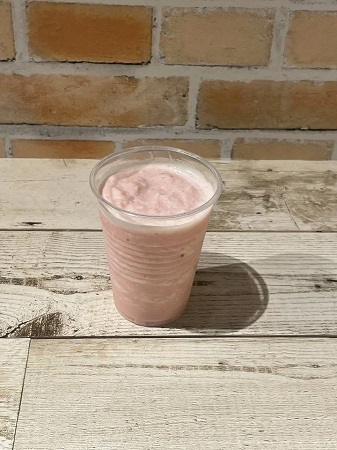 たっぷりの鳥取すいかに、白バラ牛乳とレモン汁で作られたスムージーだ。冷たくてさっぱりしており、食後にもぴったりの一品。