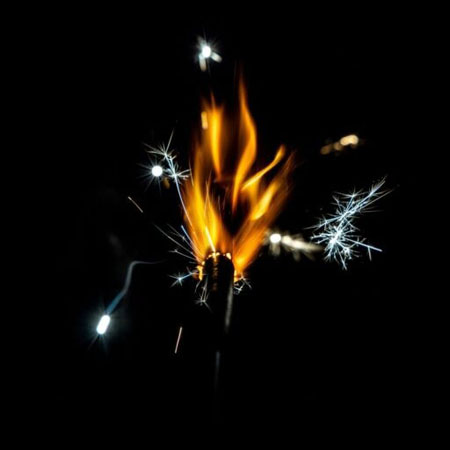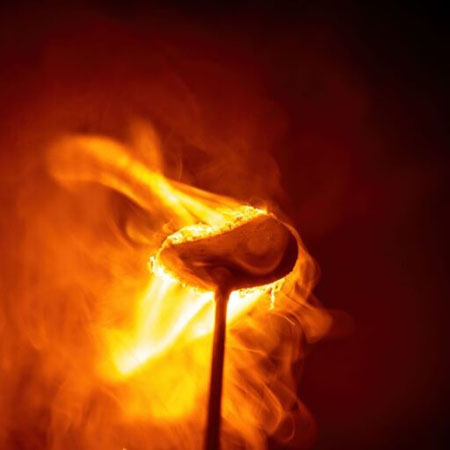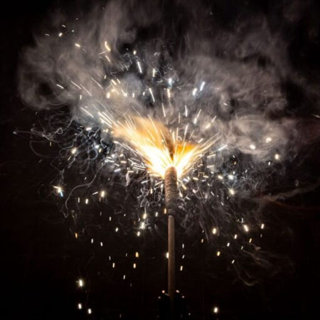卵殻(炭酸カルシウム)×金属(アルミニウム)の「棒状花火(シルバー)」は、卵の殻とアルミニウムの粉が一緒になって、小さな光の粒が流れ星のようにきらめいて舞い落ちる。