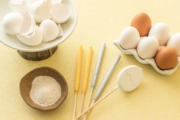花火は、製造する際の電力使用量が少なく、さらに廃材となった木材を活用するなど、比較的環境への負荷が小さい。一方、手持ち花火は使用後に「ゴミが出る」というマイナスイメージが先行する傾向にある。これを払拭すると共に、よりエコな手持ち花火を開発したいという思いから注目したのが、食品廃棄物である「卵殻」の再利用だ。