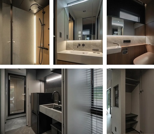 調理可能なキッチン、シャワーブース、洗面化粧台、トイレ、収納を備え、あらゆる滞在スタイルを可能にする。