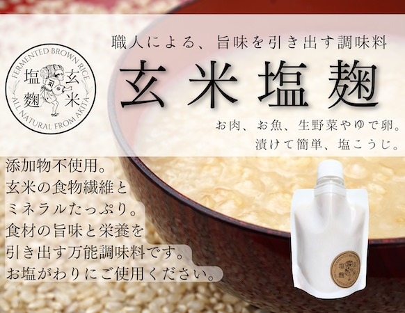 秋田県湯沢市に本社を置く「鈴木又五郎商店」が、秋田県産あきたこまちの一等玄米を原料に使用した無添加の「玄米塩麴」を発売した。
