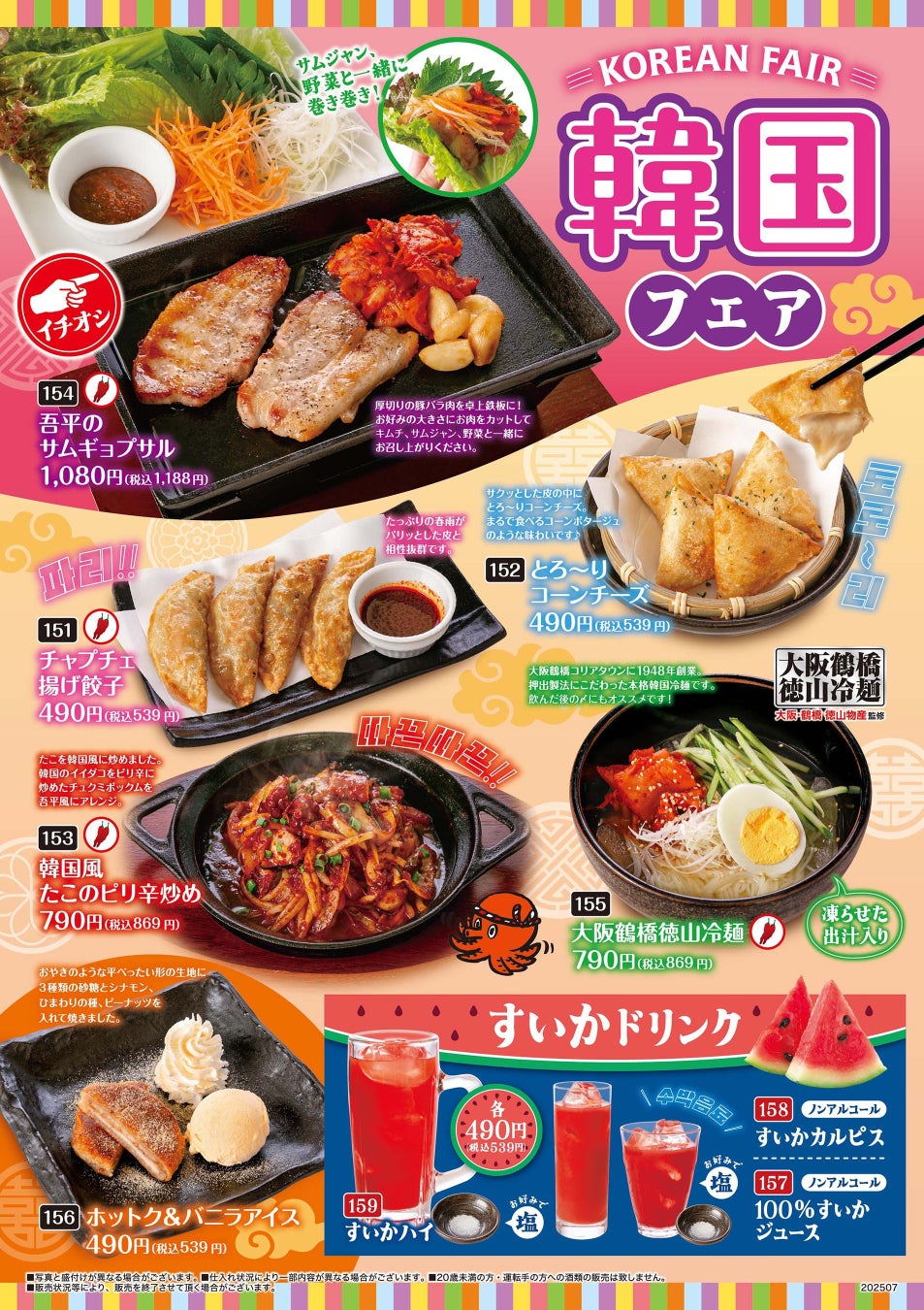 「くつろぎ」の空間を提供し、お食事を楽しんでいただく居酒屋「とりあえず吾平」では「韓国フェア」を7月16日(水)より期間限定で開催いたします。