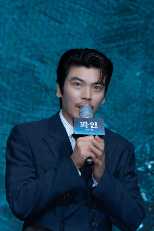 開口一番「この作品に、まともな人は一人も出ていません」と言って、笑いをとったキム・ウィソンは、釜山から来たうさんくさい“キム教授”役を演じる。「船に乗る場面が多く、俳優たちは苦労しましたが、それも楽しかったですし、長く記憶に残る作品になると思います」と撮影を振り返ると、イム・チョンチュル役のキム・ソンホは「チョン会長から、財宝探しの見張り役を命じられたチョンチョルは、ヒドンと出会い、気おされないように牽制したり、対立したり、喧嘩をする中で情が移っていったりします」と役どころを語った。