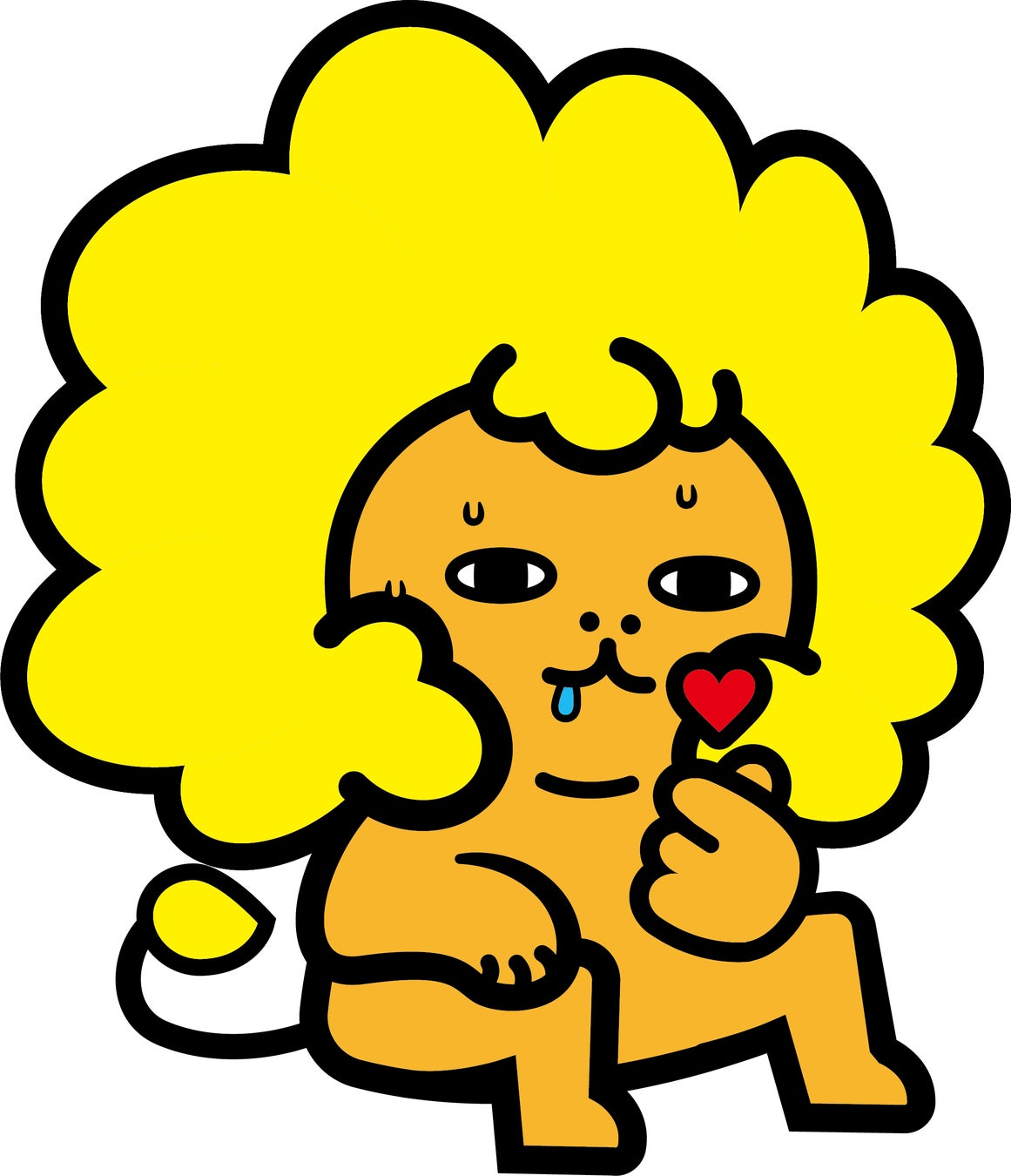 黄色いもこもこ頭がトレードマークの「ポックンミョン」シリーズのキャラクター「チョライオン」。おじさんだけど、トレンドが命! 「ポックンミョン」が大好きなライオンです。
