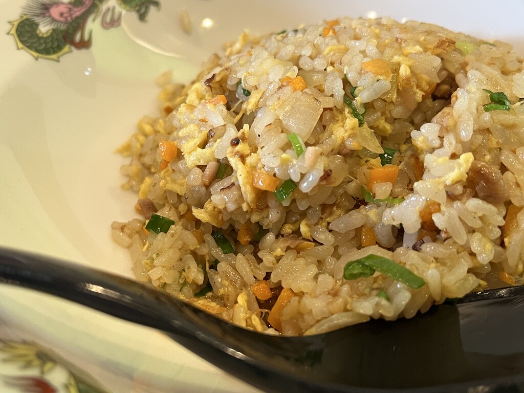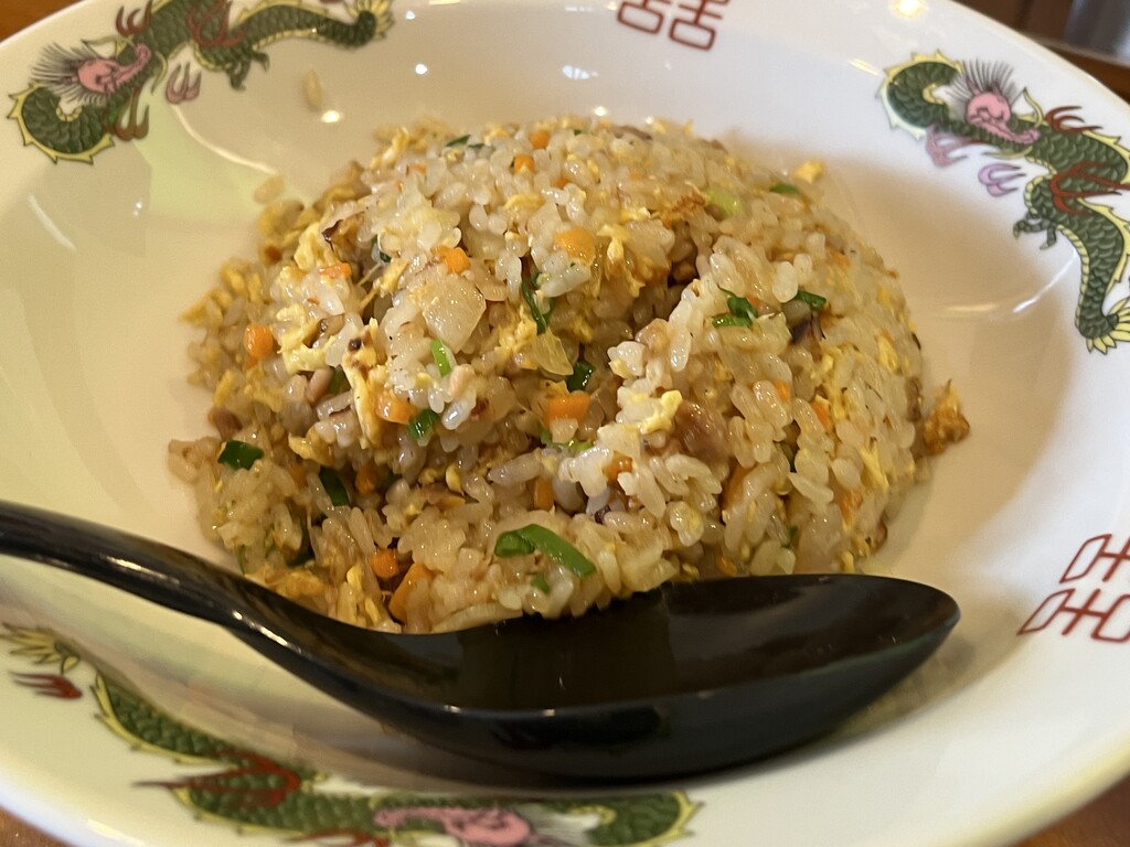 玉ねぎとチャーシューが具材のシンプルなチャーハンですけれど