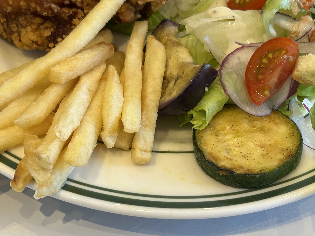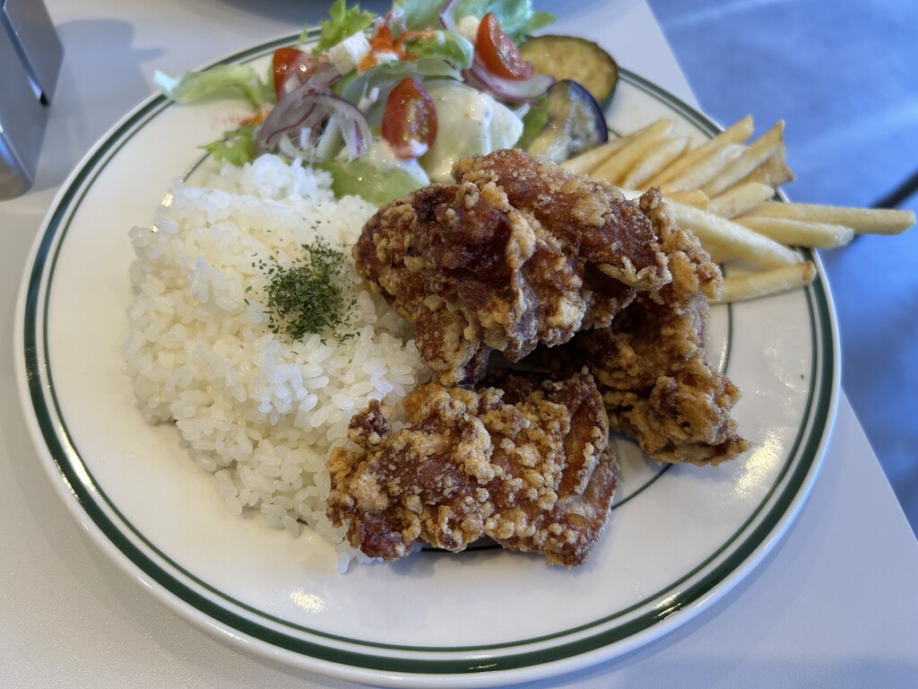 唐揚げ4個、サラダ、ポテト、ライスのプレート♪
