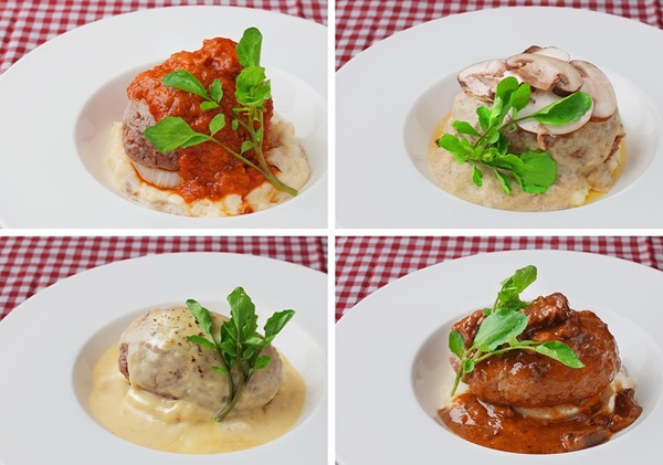 さらに、元カジュアルフレンチ店のノウハウを生かした「合い挽き肉のソースハンバーグ」として、デミグラスソースハンバーグ、キノコのデュクセルソースハンバーグ、洋食屋のトマトソースハンバーグ、モルネーソースのハンバーグの4種も登場する。