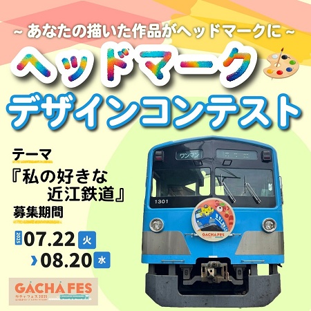 近江鉄道では、10月12日(日)に開催する「近江鉄道グループにぎわいづくり DAY『ガチャフェス2025』」にあわせて、「ヘッドマークコンテスト」の応募を募集している。
