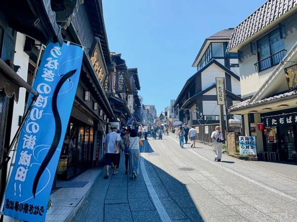 数多くの老舗うなぎ料理店が軒を連ねる成田
