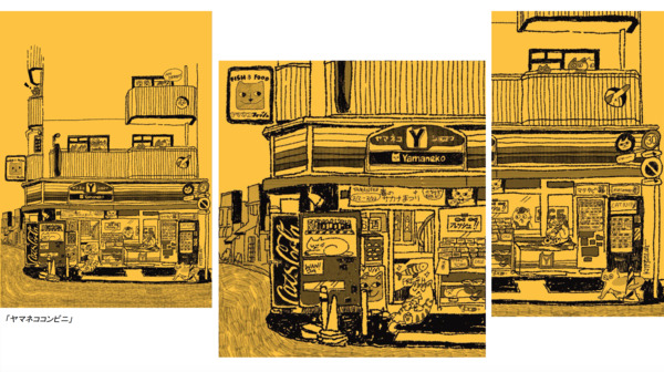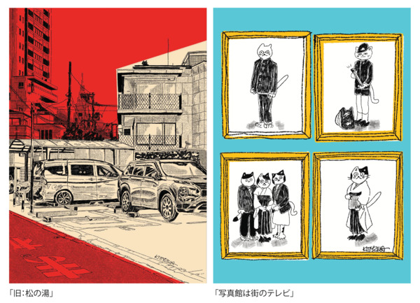 KITTYZILLA氏は、この街に通いながら、たばこ屋、写真館、喫茶店といった小さな店々で交わされる日々の会話や空気感に魅了され、そこに描くべき風景を見出してきた。