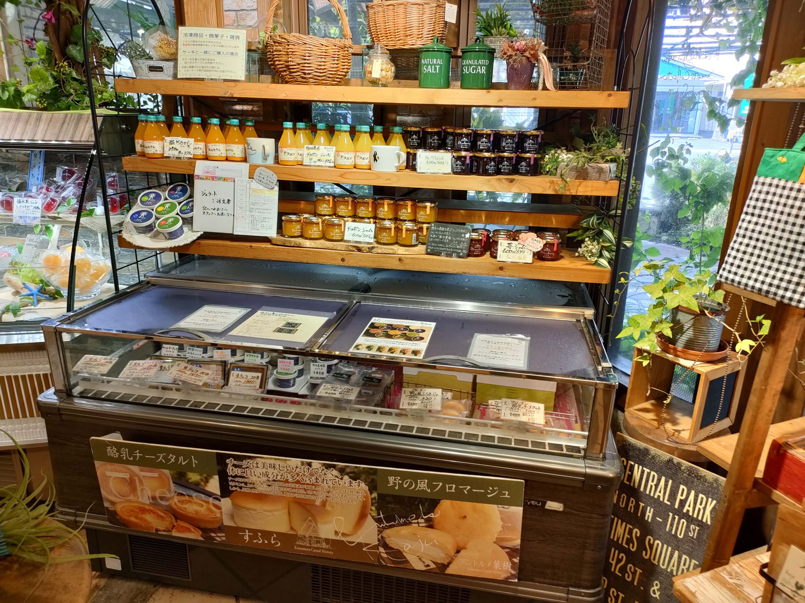 冷凍コーナーでは、ジェラートやチーズタルトなどが販売されています。