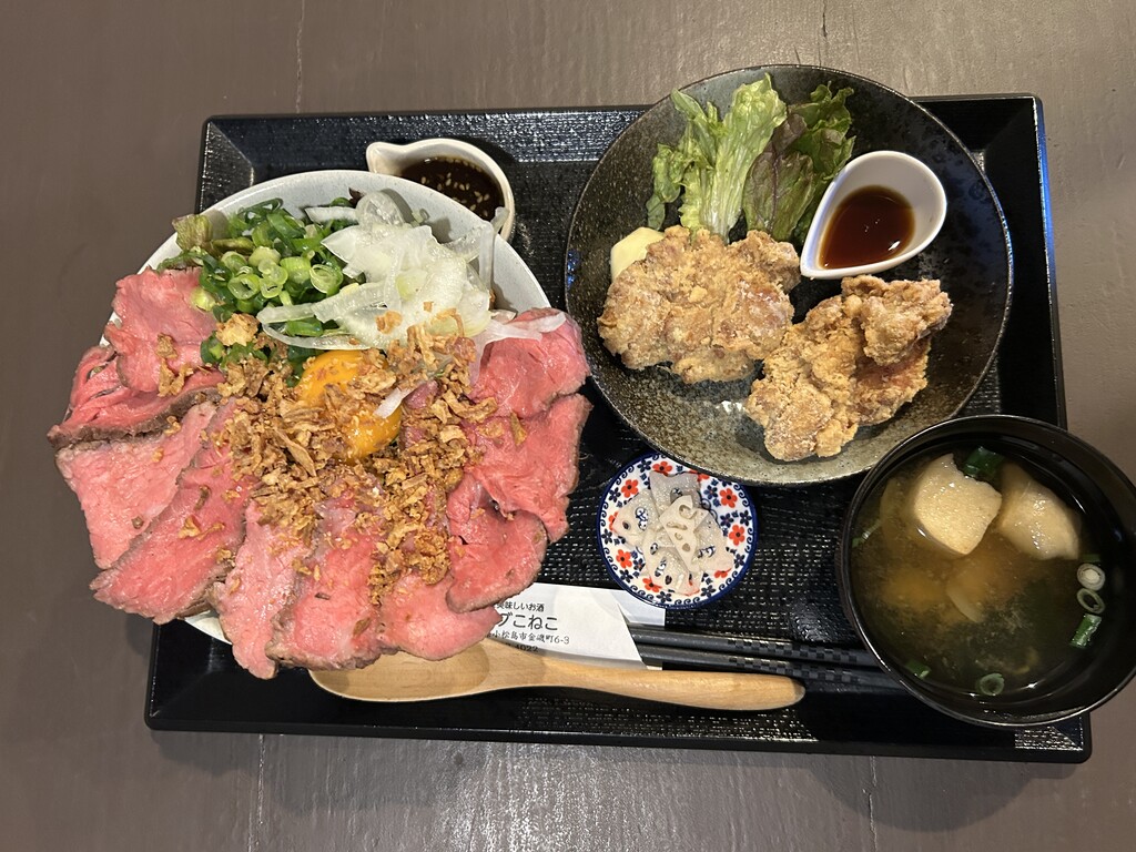 阿波牛ローストビーフ丼鶏唐揚げセット♪