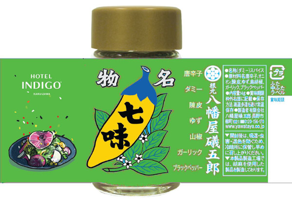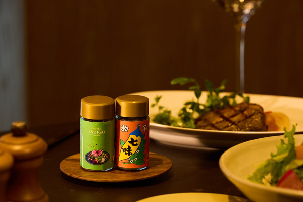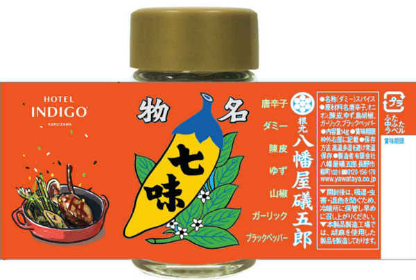 八幡屋礒五郎とコラボレーションした、ホテルインディゴ軽井沢のオリジナル七味唐辛子を味わってみては。