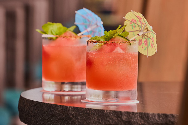 夏のシグネチャーカクテル「anguria carina」2,000円(税・サ込)は、長野県産のスイカとイタリアンリキュールに七味唐辛子を組み合わせた、爽やかで刺激的な夏のカクテル。グラスの縁には焼き塩とオリジナル七味をあしらい、スイカの甘みとピリッとした辛味が引き立つ。フォレストガーデンやロビーラウンジでも味わうことができる。提供期間は8月末まで。