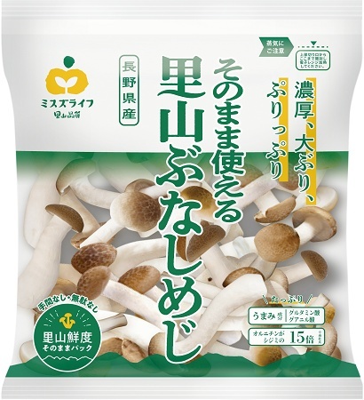 ミスズライフは、1991年に長野県にて創業。生鮮カットぶなしめじ「そのまま使える里山ぶなしめじ」「冷凍カットぶなしめじ」「ぶなクイーン」の生産・全国販売を行っている。