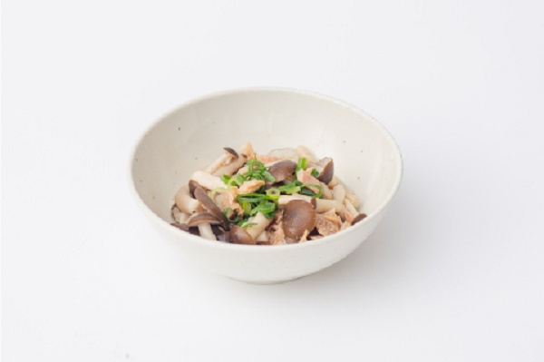 電子レンジで加熱し調味料を混ぜるだけの、包丁もまな板も不要で簡単に作れる「無限ぶなしめじ」が試食できる。