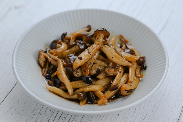 スペシャルきのこマイスター・木内氏が特製のオイスターソースで仕上げ、しっかりとした旨みと香ばしさが、ぶなしめじのおいしさを引き立てる「ぶなしめじのオイスターソース焼き」と、