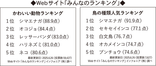 Webサイト「みんなのランキング」では、「かわいい動物ランキング」と「鳥の種類人気ランキング」で1位に。近年では、キャラクター商品や観光PRにも多く活用されるなど、北海道を象徴する存在の一つとなっている。