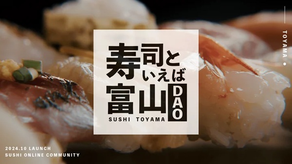 「寿司といえば富山DAO」は、2024年10月、富山県とWeb3 Timesが、地域課題をデジタルソリューションで解決するDigi-PoC TOYAMA実証実験プロジェクトの一環として、「寿司といえば、富山」ブランディングの取組みの輪を拡げ、関係人口を創出・拡大するために設立した、自律分散型オンラインコミュニティだ。