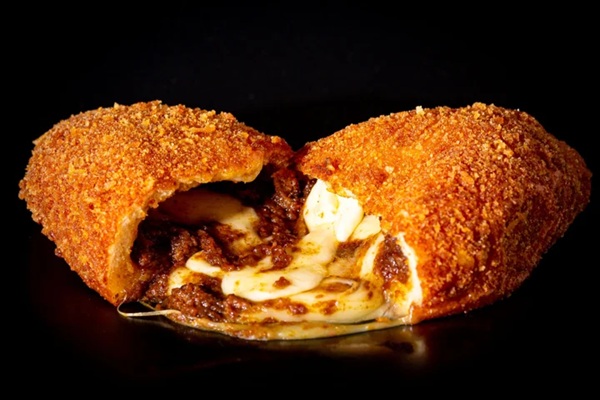 中には30種類のスパイスを使用した、旨味、甘味、酸味、コクのバランスがとれたこだわりカレーがたっぷり入っており、とろとろのチーズが溶け出す。