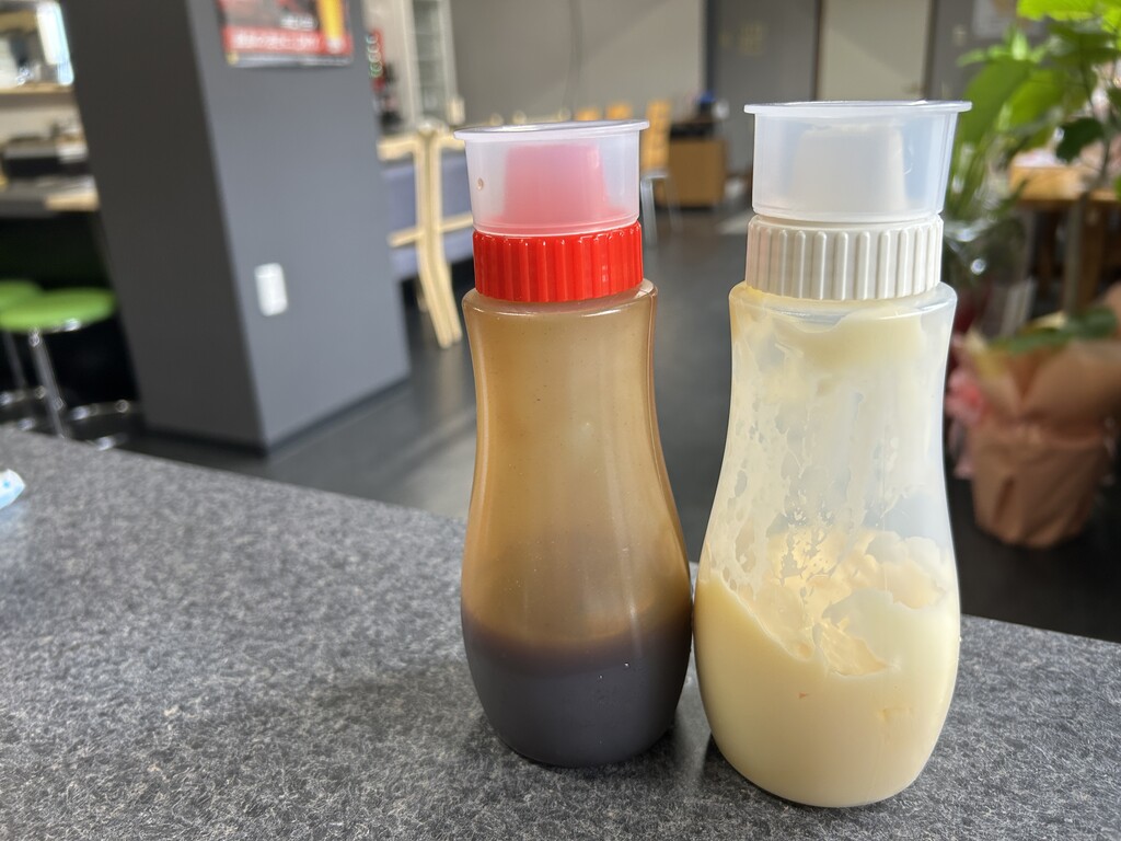 ソースとマヨネーズ、削り節、青のりをかけかけ