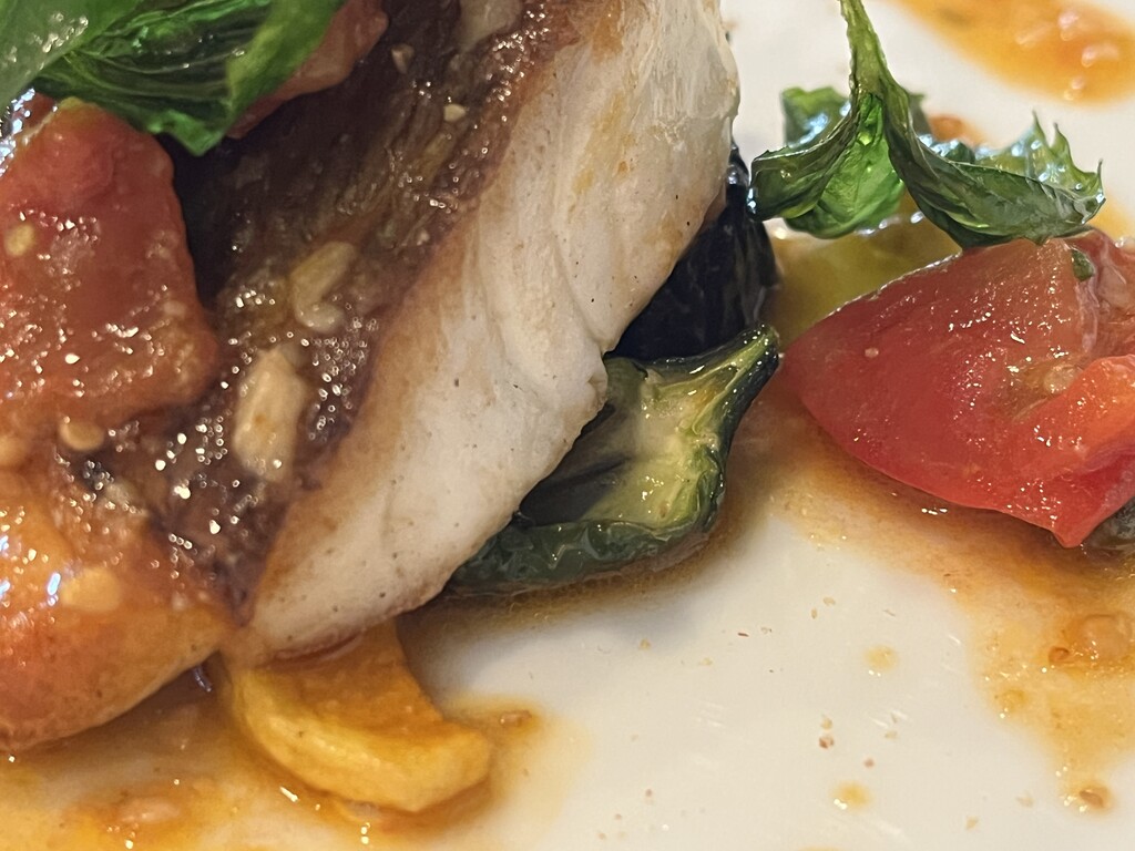 鯛のパデッラアンチョビとケッパーの完熟トマトソース♪
