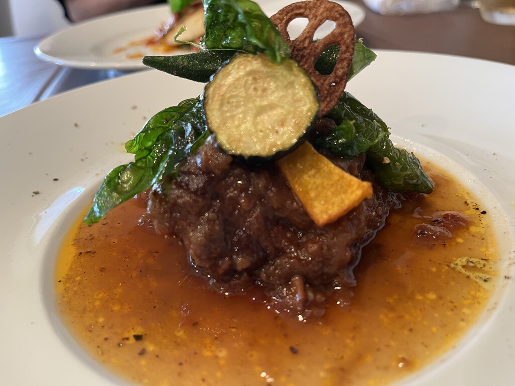 トロットロに煮込まれた極味豚に風味のいい赤ワインソース♪